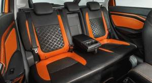 В салоне имеется своя изюминка: вставки ярко-оранжевого цвета, которые делают внутреннее пространство более привлекательным и оригинальным. Если потенциальный покупатель является любителей приглушённой гаммы цветов, то он может выбрать вариант со вставками серого цвета.